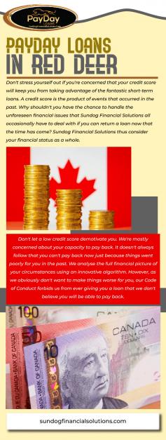 Sundog Financial Solutions offers payday loans in Red Deer to help you get the cash you need, fast. Our team provides convenient and efficient solutions to get you through tough financial times. With easy application processes and flexible repayment options, you can get back on track in no time. Visit Sundog Financial Solutions in Red Deer today for a stress-free solution to your financial needs. Visit https://sundogfinancialsolutions.com/payday-loans-red-deer