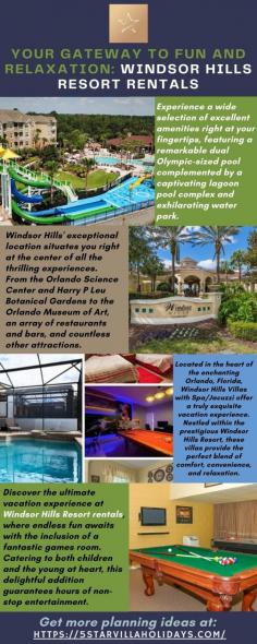 Located in the heart of Orlando, Florida, Windsor Hills Resort offers an unparalleled vacation experience for families, groups, and individuals looking for a memorable and indulgent getaway. At 5 Star Villa Holidays, we understand the importance of finding the perfect accommodation that meets all your needs and desires. Our collection of Windsor Hills Resort rentals showcases a selection of stunning villas that provide the utmost comfort, style, and privacy. These villas have been carefully handpicked to ensure that every guest enjoys a five-star experience throughout their stay.