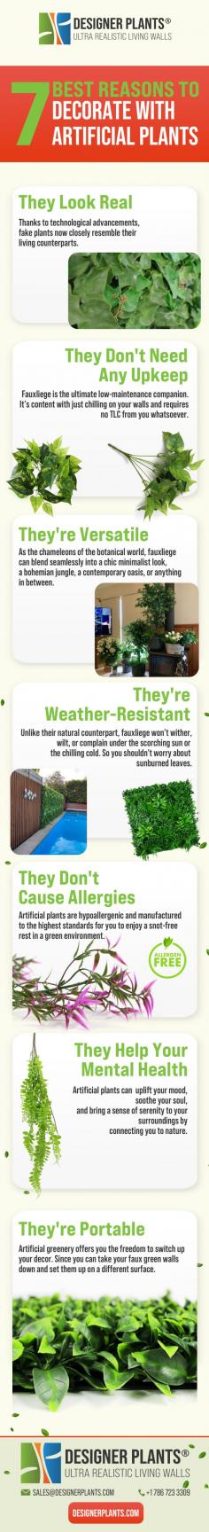 Want to know the 7 reasons to decorate with fake plants? Check out Designer Plant's infographic!