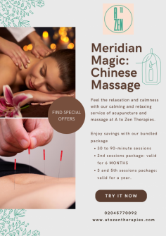 Experience the healing art of traditional Chinese massage at A to Zen Therapies. Relax your mind and body, alleviate tension, and enhance your overall well-being with our expert therapists. Book your session now!