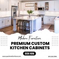 Discover exquisite custom kitchen cabinets in Phoenix with Paul Rene Furniture. Our expert craftsmanship ensures that each cabinet is tailored to your unique style and functional needs. From sleek modern designs to timeless classics, we offer a wide range of options to elevate your kitchen's aesthetic. Our bespoke cabinets are crafted to perfection, reflecting your personal taste while maximizing space and efficiency. Experience the perfect blend of luxury and practicality with Paul Rene Furniture's custom solutions. Transform your kitchen today with our innovative and elegant designs.