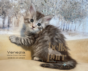 Venezia: The Sweet and Cuddly Black Silver Maine Coon Kitten Say hello to Venezia, our Black Silver Maine Coon kitten! She’s the ultimate cuddle buddy, bringing sweetness and endless cuteness to every moment. See more of her at https://bellspurr.com