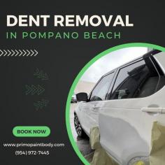 Looking for professional dent removal services in Pompano Beach? Say goodbye to unsightly dents and dings with our expert paintless dent repair solutions. Whether it's a minor ding from a parking lot mishap or a larger dent caused by hail, our skilled technicians restore your car's original look quickly and affordably. We use advanced tools and techniques to fix dents without damaging your vehicle's paint, saving you time and money. Trust us to bring back your car's shine and make it look as good as new. Call us today for a free estimate!