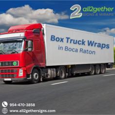 Turn your box truck into a mobile advertisement with All2Gether Signs! Serving Boca Raton, Florida, we specialize in custom-designed box truck wraps that showcase your brand with eye-catching visuals and professional craftsmanship. Whether for business promotion or aesthetic appeal, our durable and vibrant wraps are built to make a lasting impression. Visit All2Gether Signs to transform your vehicle today!