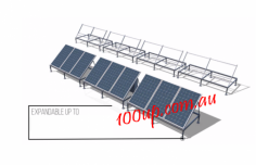 This off-grid solar system is designed for quick installation and ease of assembly. It is free-standing and can be assembled by two people. The system includes a BASE, which consists of a ground mount or a free-standing frame, three 475W solar panels totaling 1.4kW, an inverter, and a 5kWh battery. The base system has a maximum power output of 2.5kW. The battery bank can be extended to virtually any size, and the system’s AC power capacity can also be increased as needed. Additional solar panels can be added using extension blocks of three panels, which are easy to connect.
