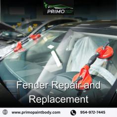 Trust Primo Paint & Body for professional fender repair and replacement services that restore your vehicle’s appearance and structural integrity. Whether your fender is dented, scratched, or severely damaged, our expert technicians use advanced techniques and high-quality materials to ensure a flawless finish. From minor touch-ups to full replacements, we provide precision workmanship that matches your car’s original look. Get back on the road with confidence—schedule your fender repair service today with Primo Paint & Body!