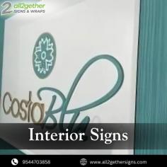 Transform your business environment with high-quality Custom Interior Signs from All2Gether Signs. Whether you need lobby signs, directional signs, wall graphics, ADA signage, or branded office displays, our expertly crafted signage solutions enhance your space’s aesthetics and functionality. Designed for businesses, retail stores, corporate offices, and more, our signs offer a professional and polished look while reinforcing brand identity. Explore our wide range of interior signage options to create a lasting impression.