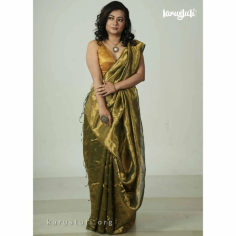 80 CNT fine linen with all-over twisted 3-ply tissue weaving, twisted pattern with linen gives you nice fall and ultimate festive wear. This saree takes 7 days to complete. AZO and PCP free color. Starch not require.