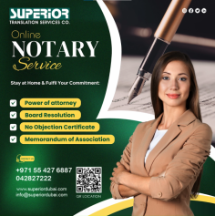 Avoid the long lines and legal complexities. Superior Translation Services provides entirely legally compliant and secure notary online services within Dubai for business owners, individuals, and expats. No matter if you're dealing with personal, academic, or commercial documents that we notarize digitally, there is no need to visit the office.