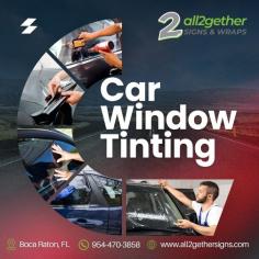 Enhance your ride with expert window tinting from All2Gether Signs in Boca Raton! We offer high-quality UV protection, heat reduction, and privacy with professional-grade films that not only look sleek but protect your interior and boost comfort. Whether you're looking for a stylish upgrade or practical protection, our team delivers flawless tinting with long-lasting results.