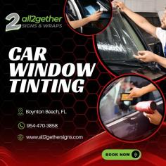 Protect your vehicle and enhance its look with expert window tinting services from All2Gether Signs in Boynton Beach! We provide high-quality tints that block UV rays, reduce heat, and increase privacy—all while giving your car a sleek, stylish finish.