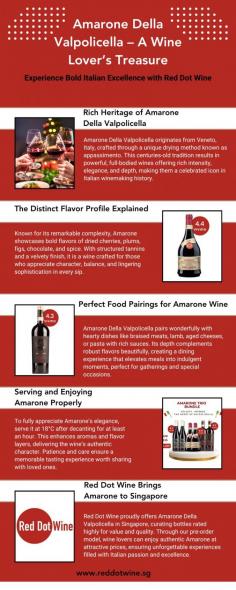Indulge in the richness of Amarone Della Valpolicella with Red Dot Wine. This iconic Italian red is celebrated for its full body, velvety texture, and deep flavors of dried fruits, spice, and chocolate. Perfect for pairing with hearty dishes or enjoying on special occasions, our Amarone is sourced directly from Europe and priced affordably. With stacked discounts on larger orders, Red Dot Wine makes premium Amarone accessible to wine lovers in Singapore.
