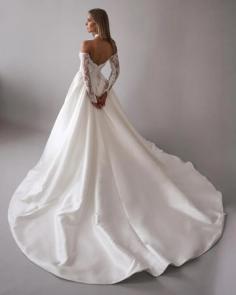 Off-the-shoulder Long Sleeve Satin Basque Waist Wedding Dress BWD308
