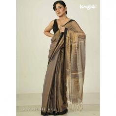 Metallic 6 yards with tested tissue in warps and weft has linen cotton blended weaving . feather soft , breathable metallic has all over buta and contrast silk border. this saree took 6 to 7 days to complete . AZO & PCP free color is best for all type of party and occasions . Learn More : https://karustuti.org/product/metallic-handloom-saree-samssb12/