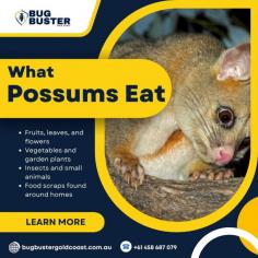 Possums are mostly herbivores, feeding on leaves, flowers, fruits, and native plants. They also eat vegetables, tree bark, and buds, especially when food is scarce. Some possums may consume insects, eggs, or small animals as a protein source. In urban areas, they often scavenge food scraps, which can lead to unwanted visits around homes.