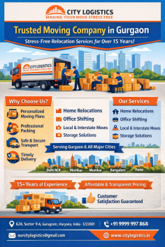 City Logistics is a trusted moving company in Gurgaon, delivering safe and efficient relocation services for homes and offices. With 15+ years of experience, we provide personalized moving plans, professional packing, and secure transportation.