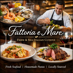 Looking for an authentic Italian restaurant in Burlingame? Discover the rich taste of Italy at Fattoria e Mare, where traditional recipes meet modern culinary excellence. From freshly made pasta and wood-fired pizzas to premium seafood and perfectly cooked steaks, every dish is crafted using high-quality, locally sourced ingredients. Enjoy a warm and elegant ambiance perfect for family dinners, romantic evenings, or special occasions. With outstanding service and a passion for authentic Italian flavors, Fattoria e Mare offers a truly unforgettable dining experience. Reserve your table today and savor the best Italian cuisine in Burlingame!